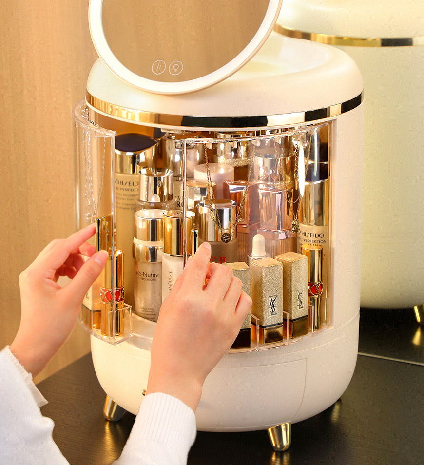- HighCapacity: This LED makeup organizer can hold your lipstick, foundation, blush, eye shadow, base makeup, makeup brush, wipe face, Brush etc., and can also be used to store jewelry, personal accessories, beauty tools, souvenirs, etc. Keep your desktop neat and clean.